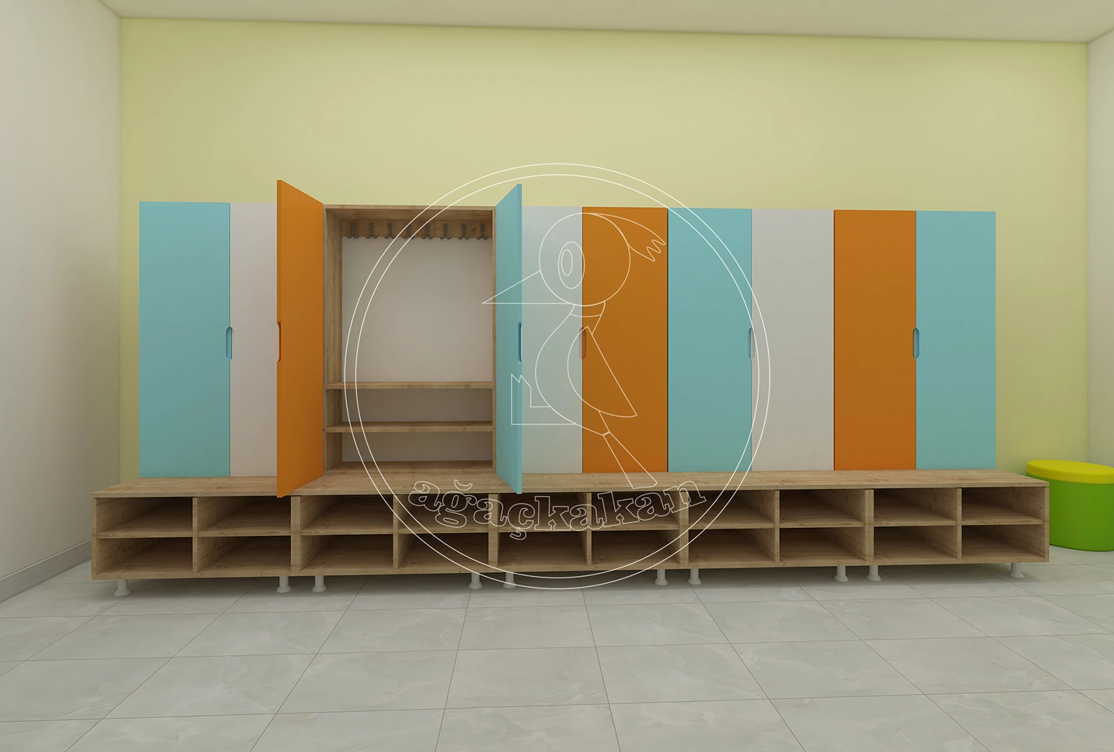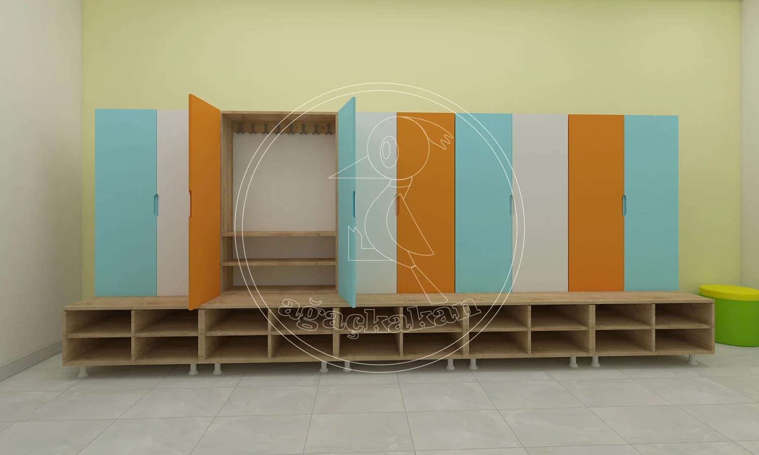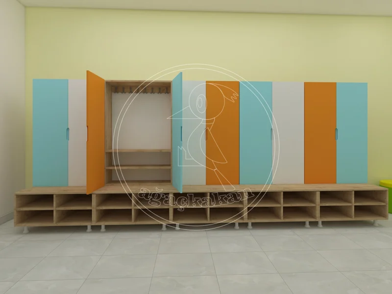 Anaokullarında portmanto ve ayakkabılıklar, çocukların kişisel eşyalarını düzenli bir şekilde saklamaları için vazgeçilmez mobilyalardır. Bu ürünler, mont, şapka, atkı ve ayakkabı gibi eşyaların belirli bir düzen içinde tutulmasını sağlar. Aynı zamanda, çocukların eşyalarını kaybetme olasılığını azaltır ve sınıf ortamının düzenini koruyarak daha verimli bir öğrenme alanı oluşturur.