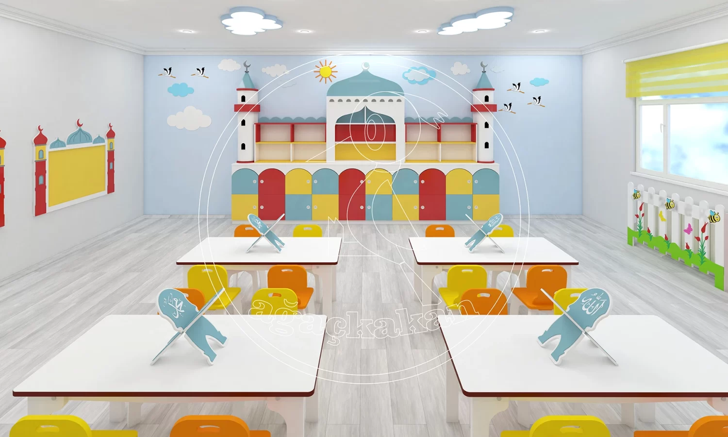 Ağaçkakan Mobilya olarak, okul öncesi Kur’an Kursu sınıflarına yepyeni bir atmosfer kazandırıyoruz.
