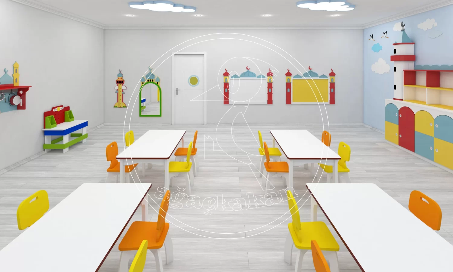 Cami Temalı 4–6 Yaş Kur’an Kursu Sınıf Konsepti, yalnızca bir mobilya seti değil; çocukların kalplerine dokunan, merak duygusunu besleyen ve maneviyatı sevgiyle tanıtan bir eğitim ortamıdır.
