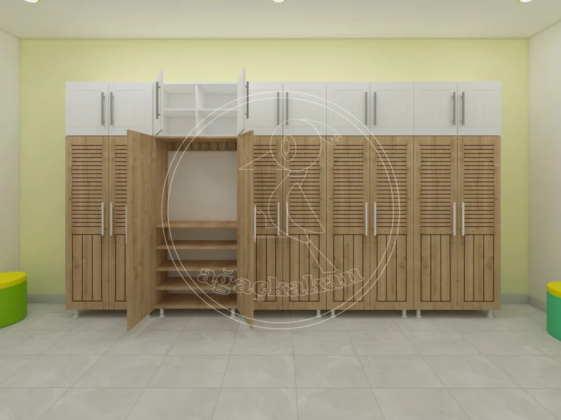 Portmanto ve ayakkabılıklar sadece eşya depolama alanı değil, aynı zamanda çocukların düzenli olma ve sorumluluk alma becerilerini geliştiren bir eğitim aracıdır. Doğal malzemeler ve estetik tasarımlar, hem çocukların hem de öğretmenlerin keyif alacağı bir ortam yaratır.