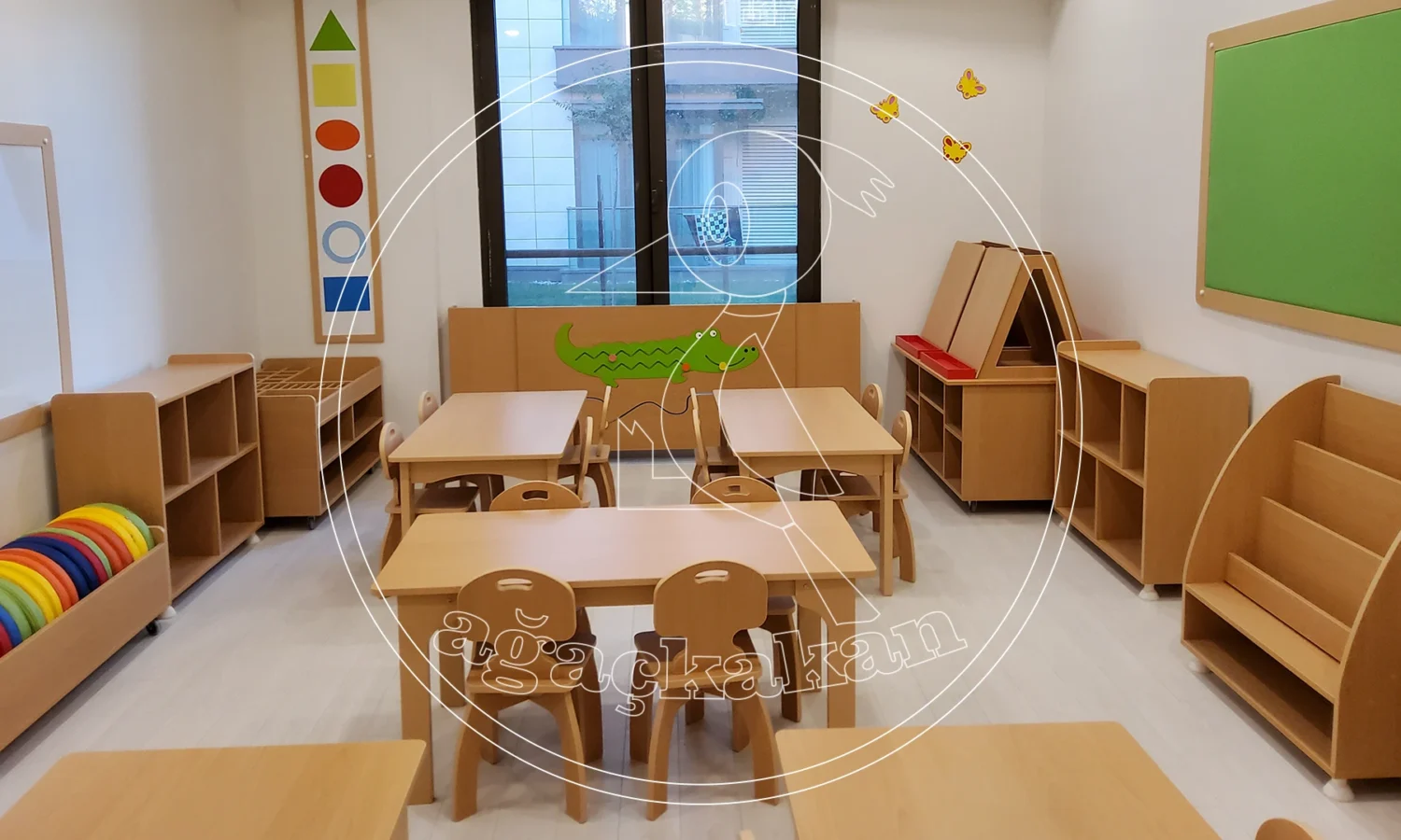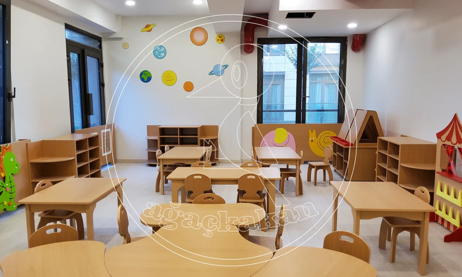 Tasarım sürecinde, çocukların güvenliği ve konforu ön planda tutuldu. Ergonomik ve estetik mobilya çözümleriyle, çağın gereklerine uygun bir öğrenme ortamı ortaya çıkarıldı. Bu kapsamda, alanın her detayında kalite ve işlevsellik önceliklendirildi.