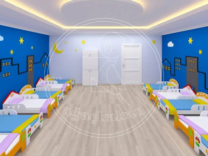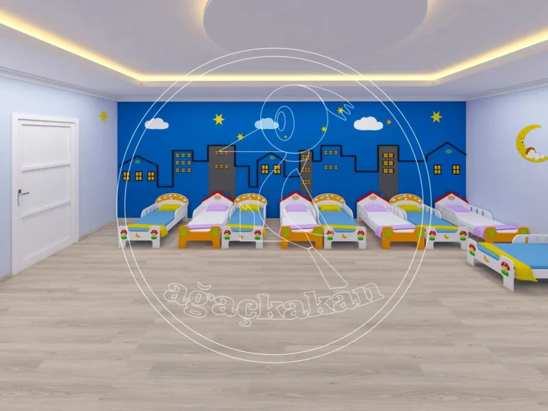 Anaokulu ve kreşlerde çocukların sağlıklı gelişimi için uyku saatleri büyük önem taşır. Rahat ve güvenli bir uyku ortamı sunan anaokulu uyku odası tasarımları, çocukların dinlenme sürecini daha verimli hale getirir. Ağaçkakan Mobilya tarafından geliştirilen “Mantar ve Çatı Başlıklı Uyku Odası“, hem estetik hem de fonksiyonellik açısından çocukların ilgisini çekerek uyku sürecini keyifli hale getirir.