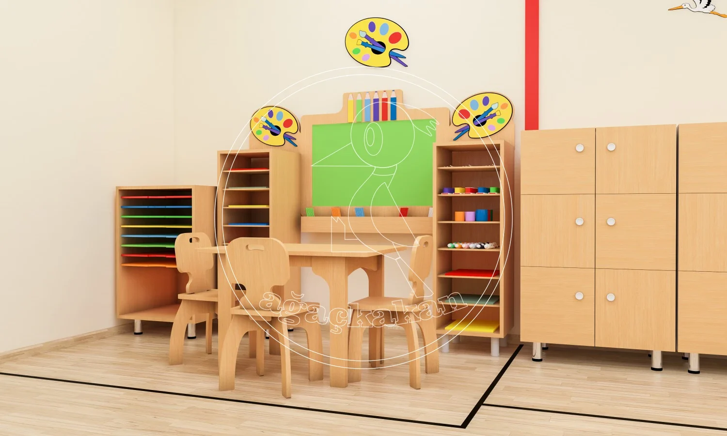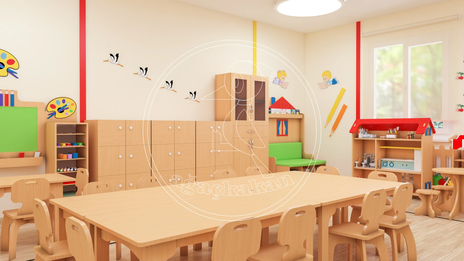 Ağaçkakan Mobilya, “Anaokulu ve kreş mobilyası” alanında uzmanlaşmış bir marka olarak, öğrenme merkezli sınıf konseptini kendi üretim ve montaj gücüyle hayata geçirmektedir. Yüksek kaliteli, dayanıklı ve çocuk sağlığına uygun malzemelerle üretilen mobilyalar, güvenlik standartlarını en üst düzeyde karşılamaktadır. Ağaçkakan Mobilya, profesyonel tasarım ve üretim anlayışıyla, hem estetik hem de işlevsellik açısından fark yaratan çözümler sunar.